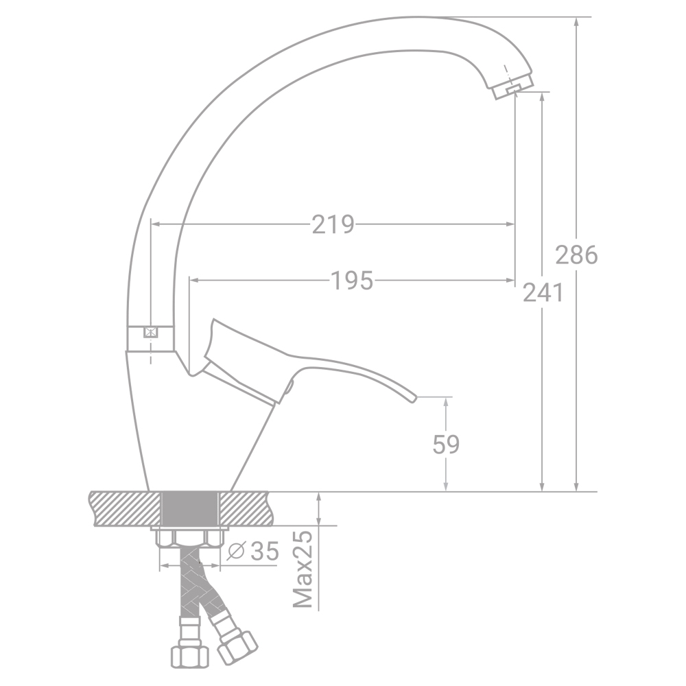 Змішувач SE Ø40 для кухні гусак вухо лат. шток на гайці TAU (SE-4B445C)