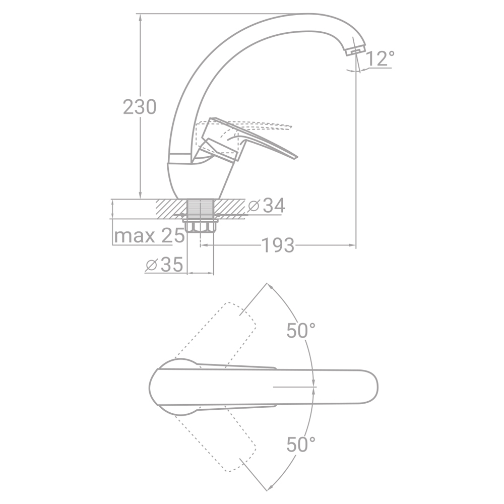 Смеситель SF Ø40 для кухни гусак ухо на гайке TAU SF-4B139C (9810110)
