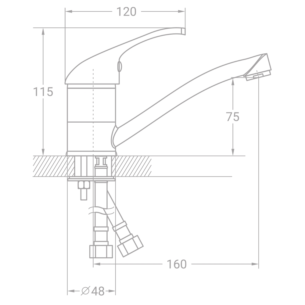 Монтаж змішувача для кухні TN-2B142C можна виконати самостійно. Для цього використовуйте шпильку та гнучкі шланги, що постачаються в комплекті, а також водопровідні ключі.