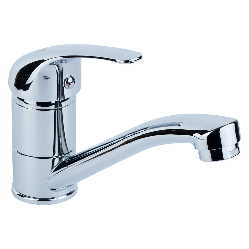 Такий кран підійде для кухонних мийок невеликих габаритів.