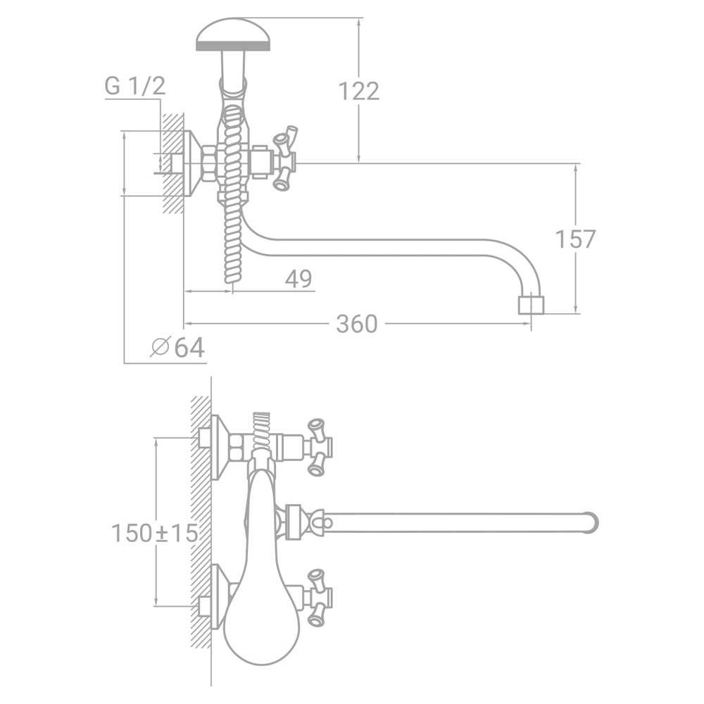 Спосіб кріплення змішувача для ванни – настінний, тип підведення – ексцентрики.