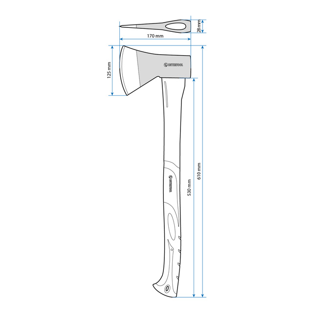 Зручний хват розподіляє навантаження та допомагає виконати значно більший обсяг робіт. Завдяки легкому та міцному руків'ю з фібергласу досягається максимальний комфорт під час інтенсивних робіт. Загальна вага сокири – 1.6 кг, вага обуха – 1 кг.