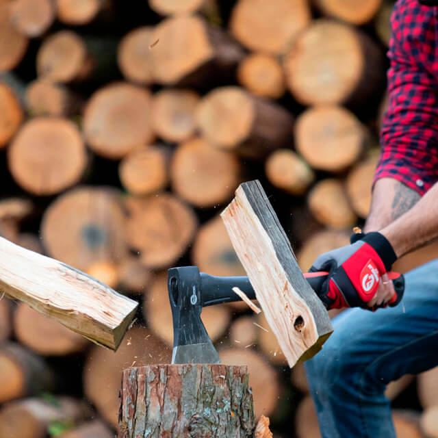 Сокира не вислизає з рук навіть у дощову погоду завдяки гумовим вставкам та невеликому вигину ручки. Спеціальна анатомія сокири із системою гасіння вібрацій зменшує силу віддачі.