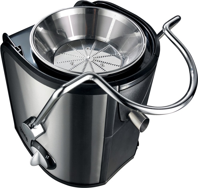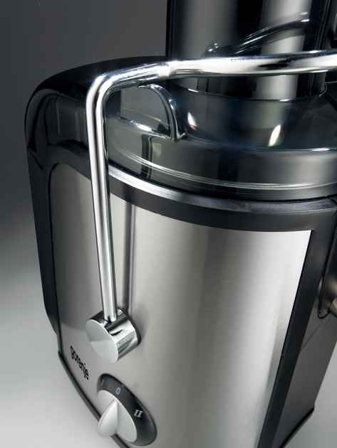 Покращення ефективності приготування соку завдяки тому, що в широку трубку для подавання можна помістити чисті цілі фрукти й овочі. Якщо необхідно, розріжте їх навпіл. Це зручно, а також збільшить частку вітамінів. Просто помістіть очищені фрукти в отвір для подавання та перемістіть у контейнер для соку.