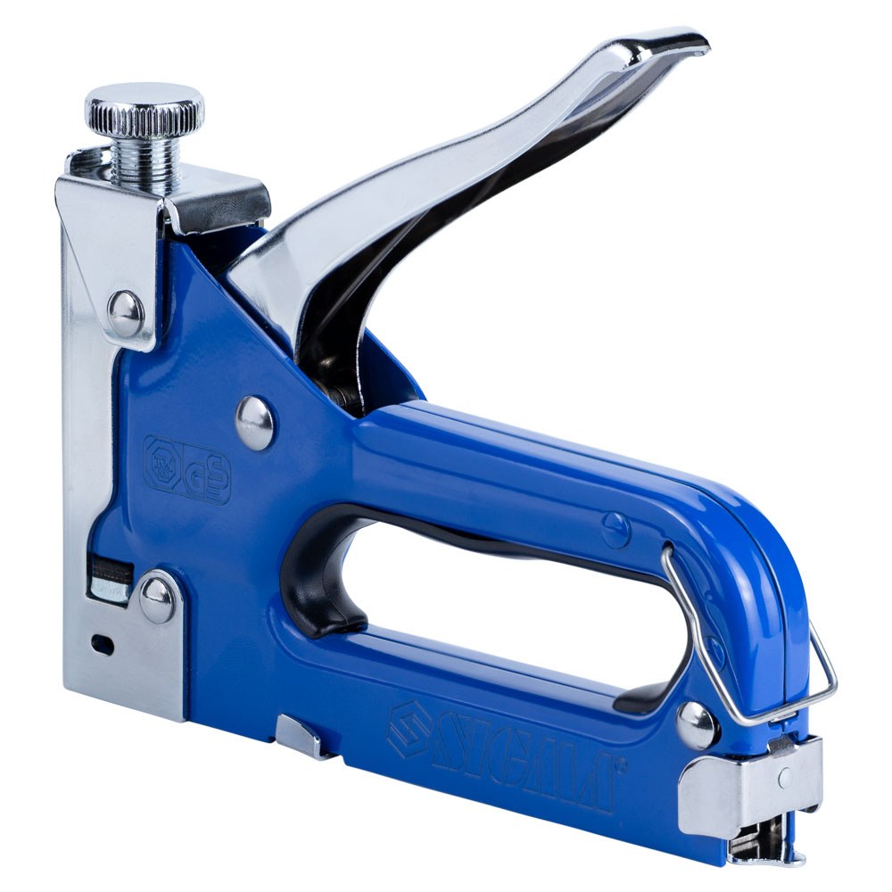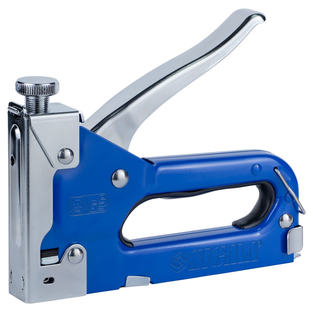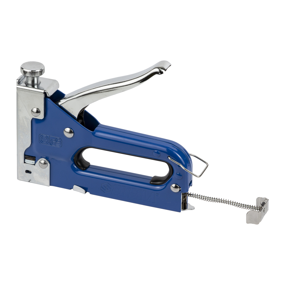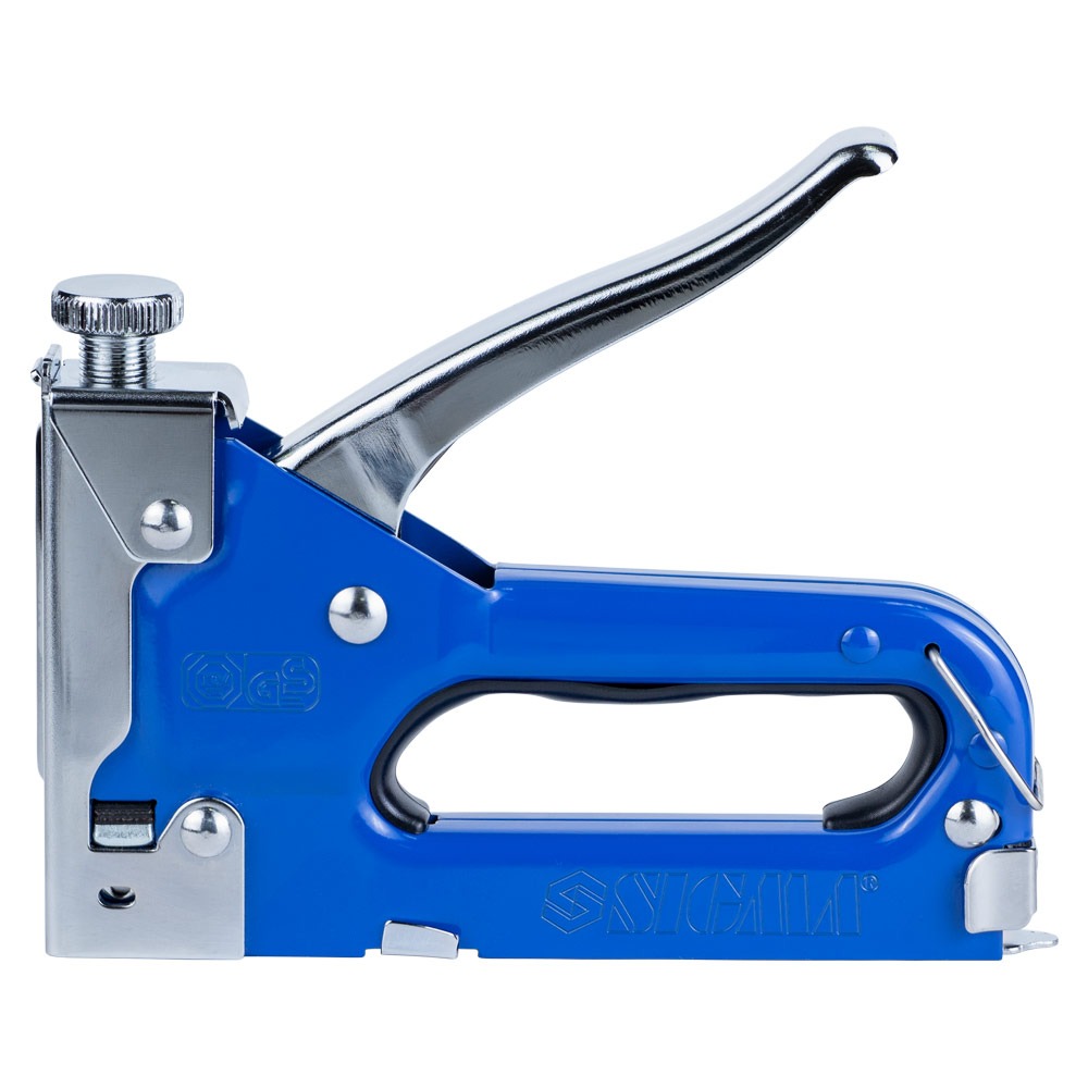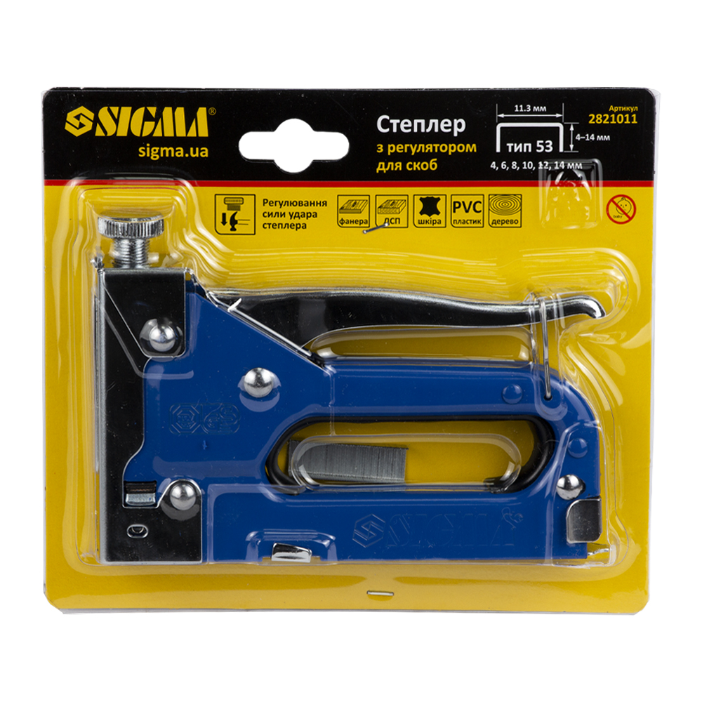 Степлер із регулятором для скоб 4-14мм (синій) Sigma (2821011) призначений для швидкого кріплення тонких матеріалів до основи з дерева або ДСП.