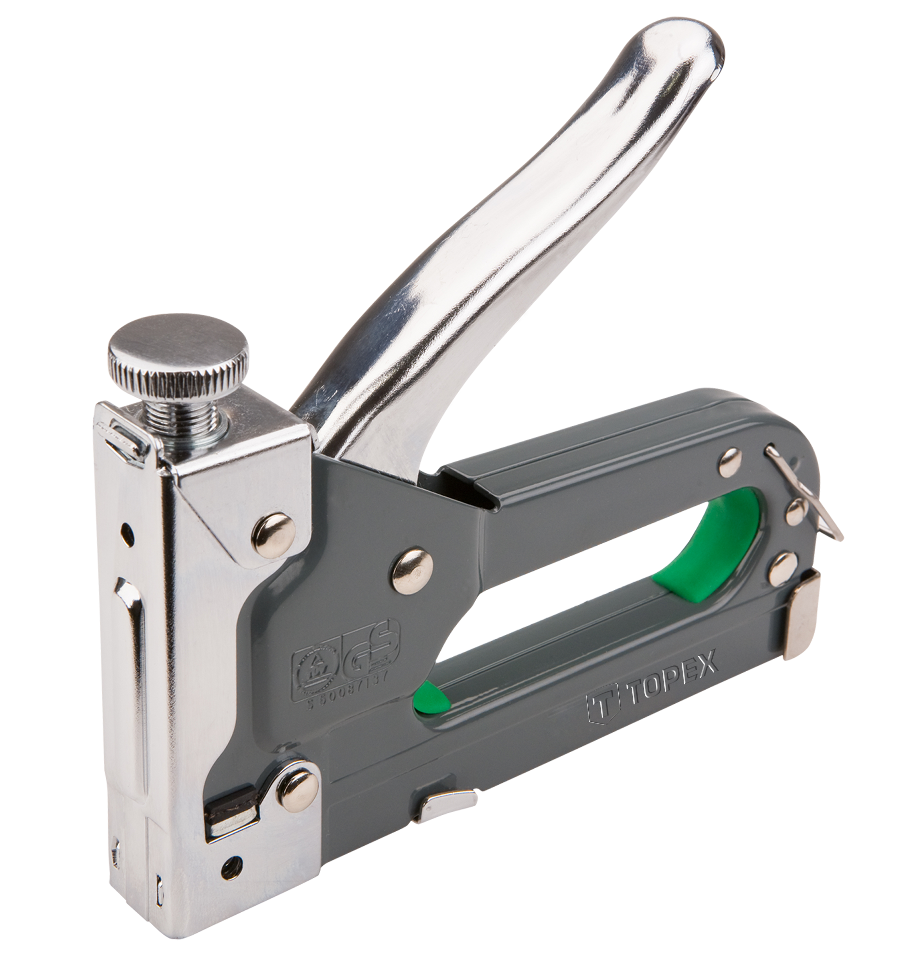 Степлер TOPEX працює зі скобами типу G, розміром від 6 до 14 мм. Металевий корпус гарантує міцність інструменту. Степлер призначений для важких робіт, для кріплення матеріалів великої товщини. Завдяки регулюванню сили забивання скоб, степлер може використовуватися для роботи як з твердими, так і з м'якими матеріалами. Точно забиває скоби, не деформуючи їх, в тому числі при роботі з твердими матеріалами. Бренд TOPEX призначений для домашніх майстрів.