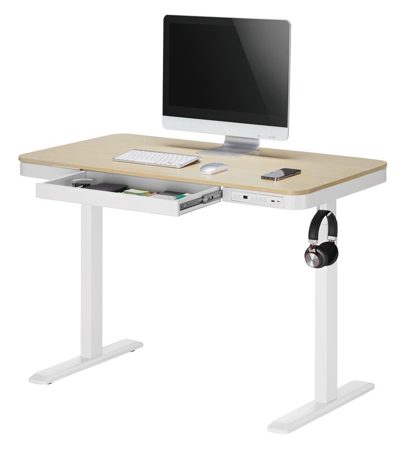 Стіл комп’ютерний 2E CE218D, висота 72-120см, електропривод, стільниця 118x60см (світле дерево), металева база (біла), USB-A/USB-C