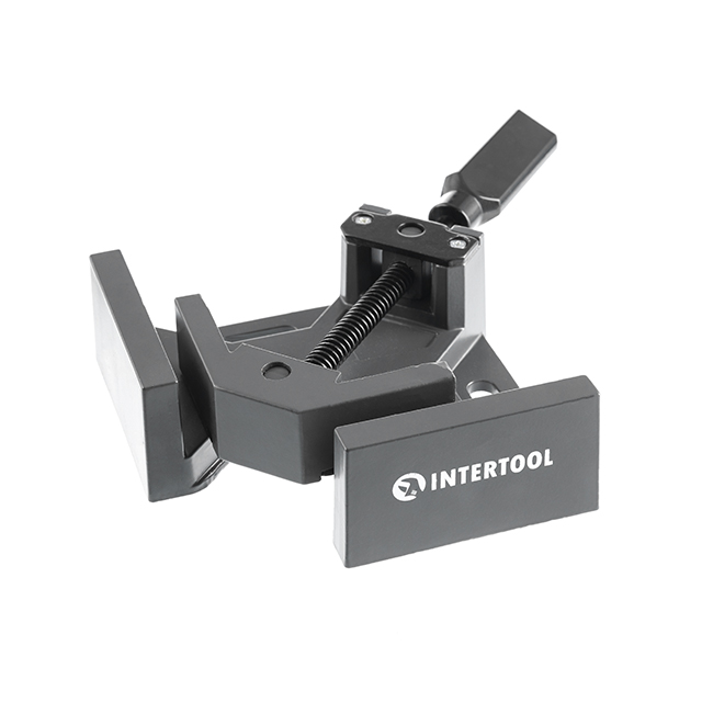 Струбцина виготовлена з міцного алюмінієвого сплаву з губками, розташованими під прямим кутом.