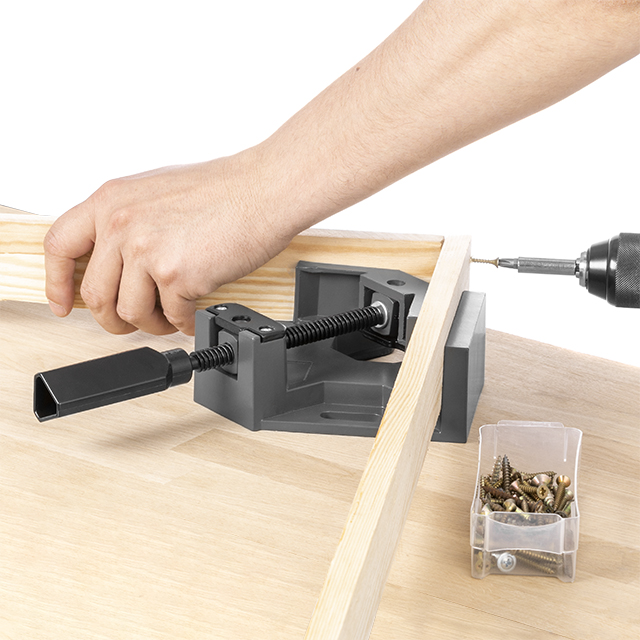 Кутова струбцина для зовнішніх кутів призначена для надійної та точної фіксації деталей під кутом 90 градусів. Це дуже популярний та корисний інструмент під час різних столярних робіт для склеювання поверхонь під прямим кутом. Використовується для виготовлення дерев'яних рамок, каркасів, коробків, ящиків. Також може застосовуватися як затискний пристрій для кутових з'єднань і кріплення цвяхів, зварювання, загвинчування тощо.