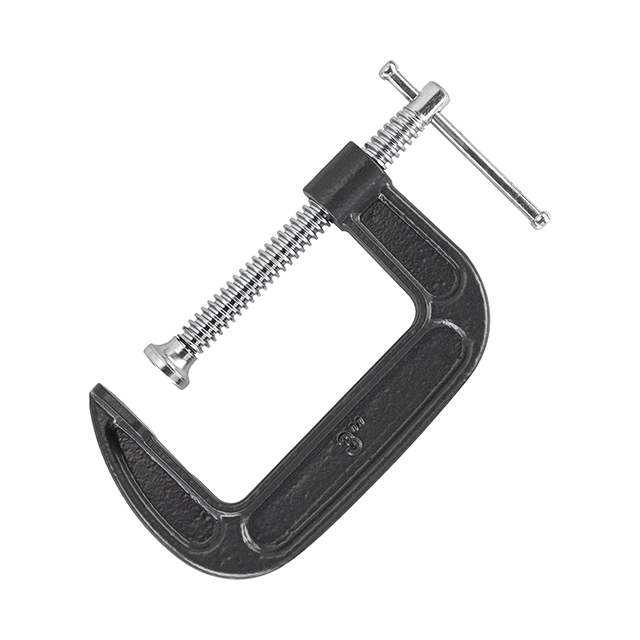 G-подібна струбцина виготовлена із міцного металу, покрита порошковою фарбою, стійкою до корозії. Гвинт надійно фіксує заготовки завдяки рухливому штифту, який дозволяє сильніше їх стягувати.