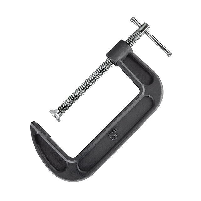 G-подібна струбцина виготовлена із міцного металу, покрита порошковою фарбою, стійкою до корозії. Гвинт надійно фіксує заготовки завдяки рухливому штифту, який дозволяє сильніше їх стягувати.