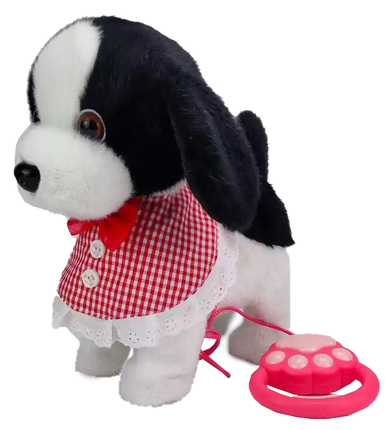 Інтерактивна м яка іграшка: гуляє на повідку, має звуові ефекти, гавкає, виляє хвостом, лизькає язиком, реагує на дотик, запує голос (повторюшка). Рекомендований вік: від 3х років. Живлення: 3 батарейки типу АА (не входять до комплекту). Матеріал: поліестер, пластик. 24х20х11.5 см. Розмір упаковки: 23.5*23.5*16 см.