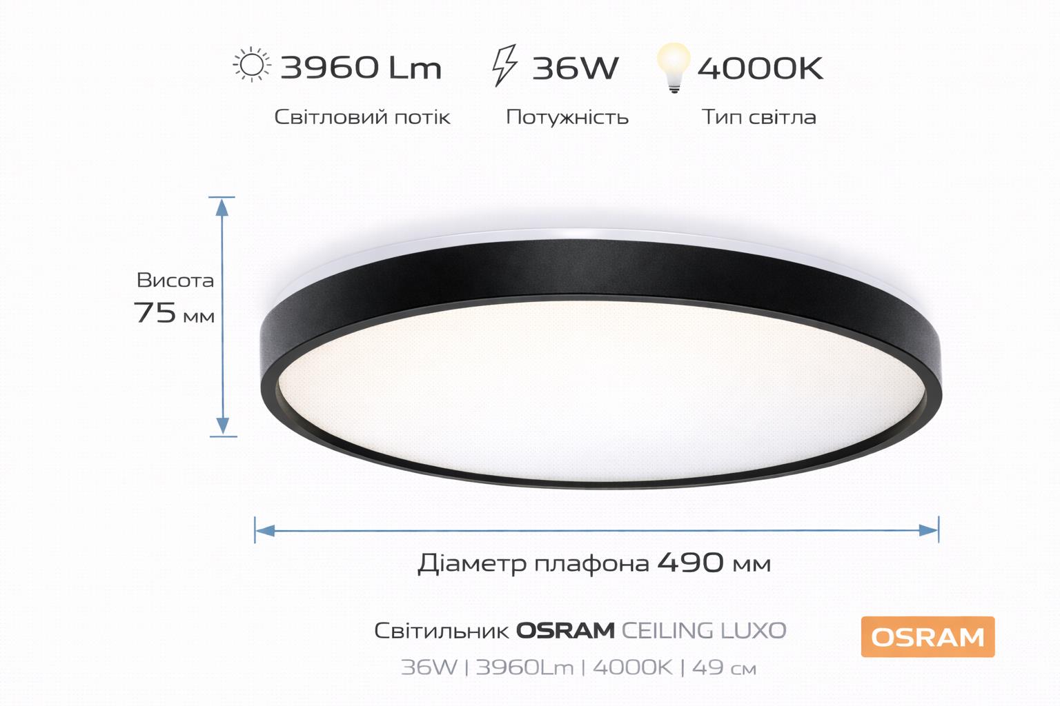 Світильник накладний OSRAM CEILING LUXO 36Вт 4000К чорний