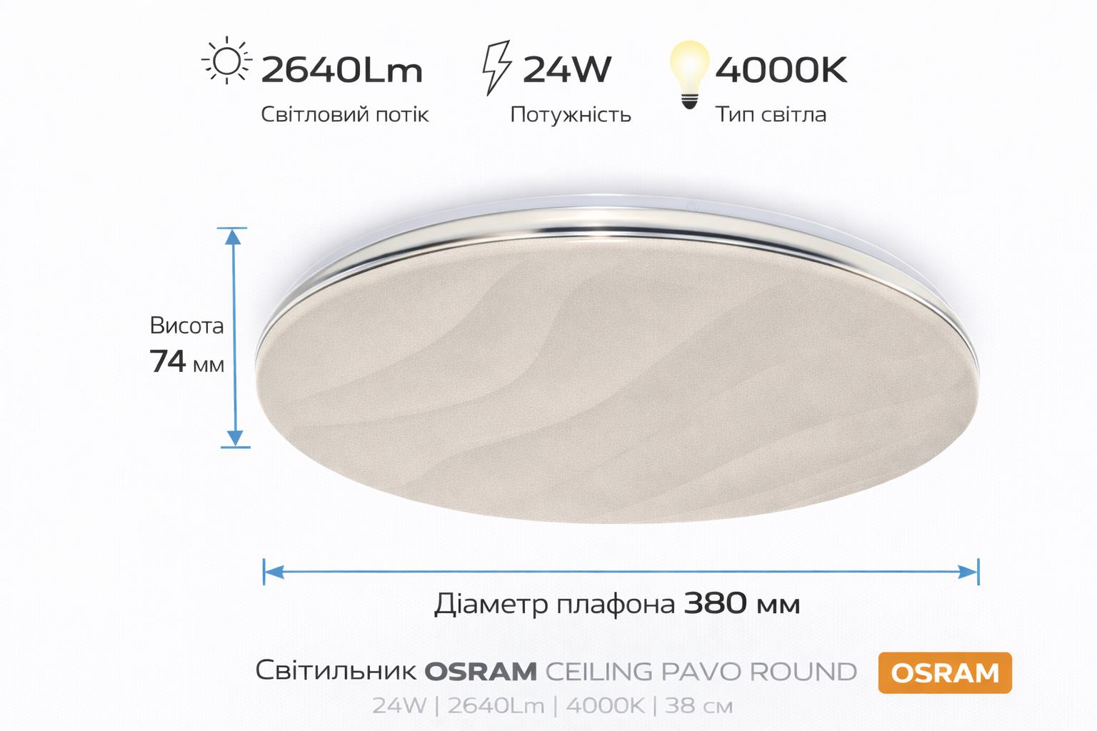 Світильник накладний OSRAM CEILING PAVO 380мм Round 24Вт 4000K