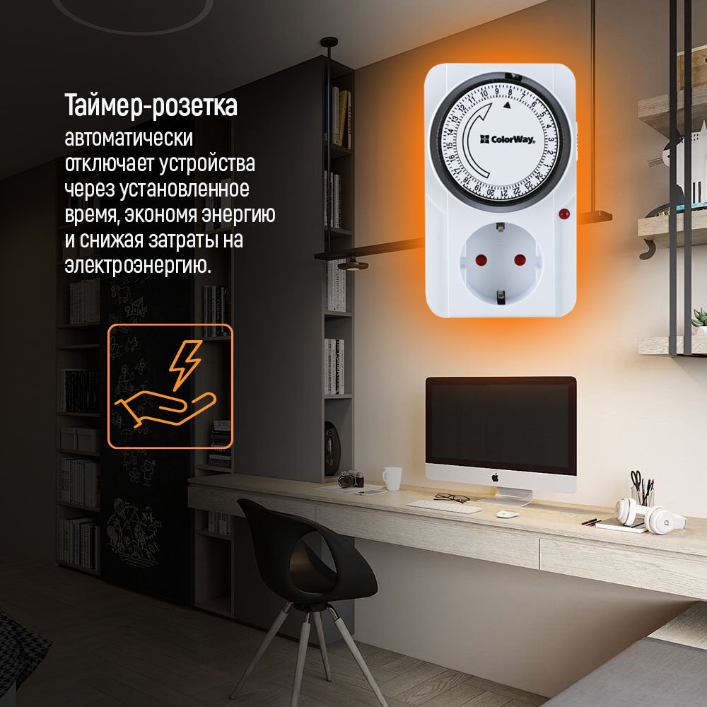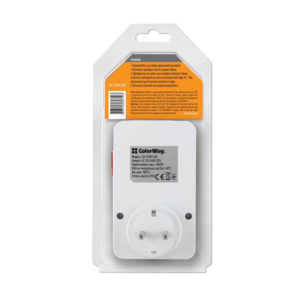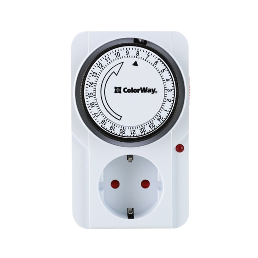 Таймер-розетка ColorWay (16A/3680W) механічний добовий 24Н (CW-STM01-24H)