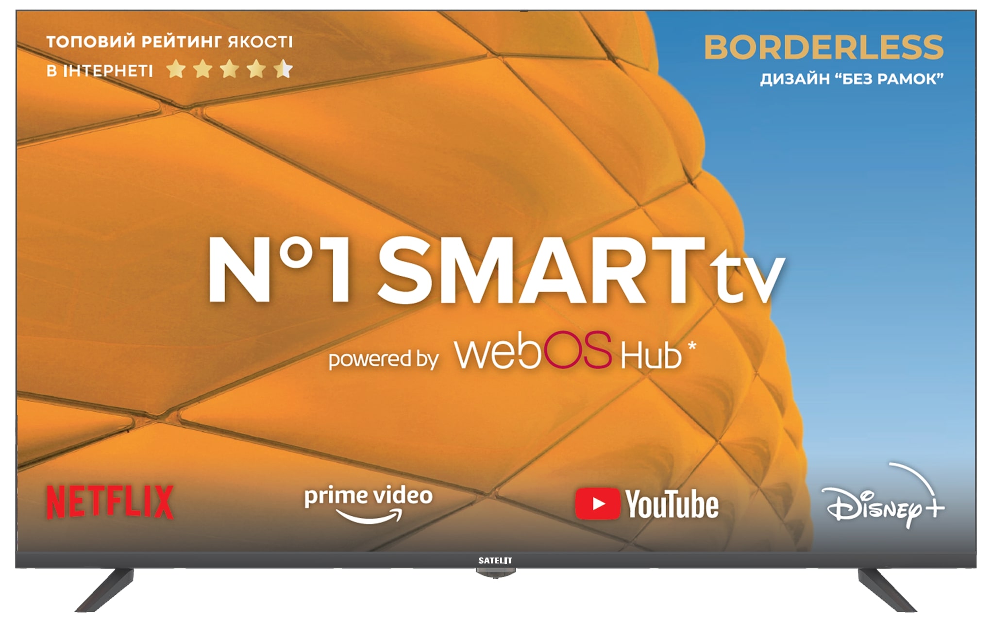 Тонкий, яскравий та функціональний — ось що означає сучасний телевізор. Satelit саме такий! Стильний дизайн, нововведення технологій та якісне зображення. Satelit довів: щоб йти в ногу з часом, не потрібно дорого платити.