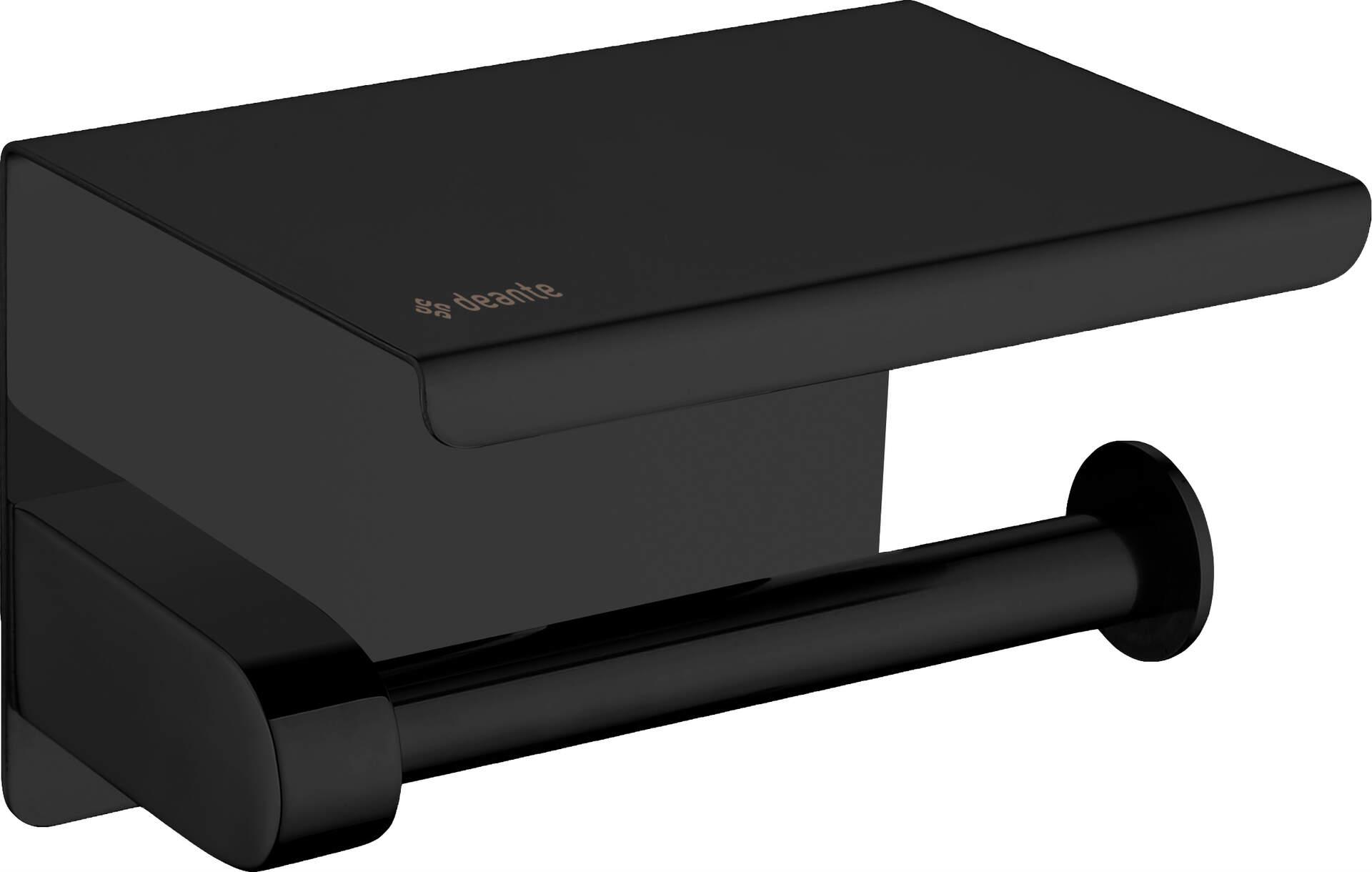 Тримач Deante Round для туалетного паперу, настінний з полицею, чорний