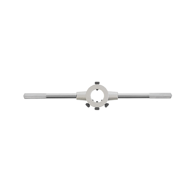 Тримач досить простої конструкції з хромованим покриттям. Розмір під плашку регулюється за допомогою гвинтів, вони також щільно фіксують плашку проти ковзання, що забезпечує точно нарізану різьбу, без перекосів. Ручки тримача з насічками для зручної роботи проти ковзання.