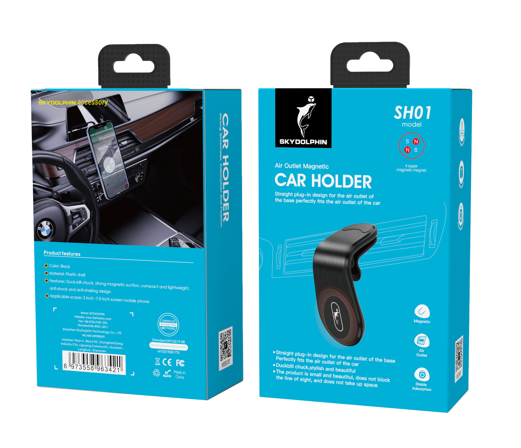 Тримач для смартфона SkyDolphin SH01 Air Outlet Magnetic Holder Black (SDAT-000084)