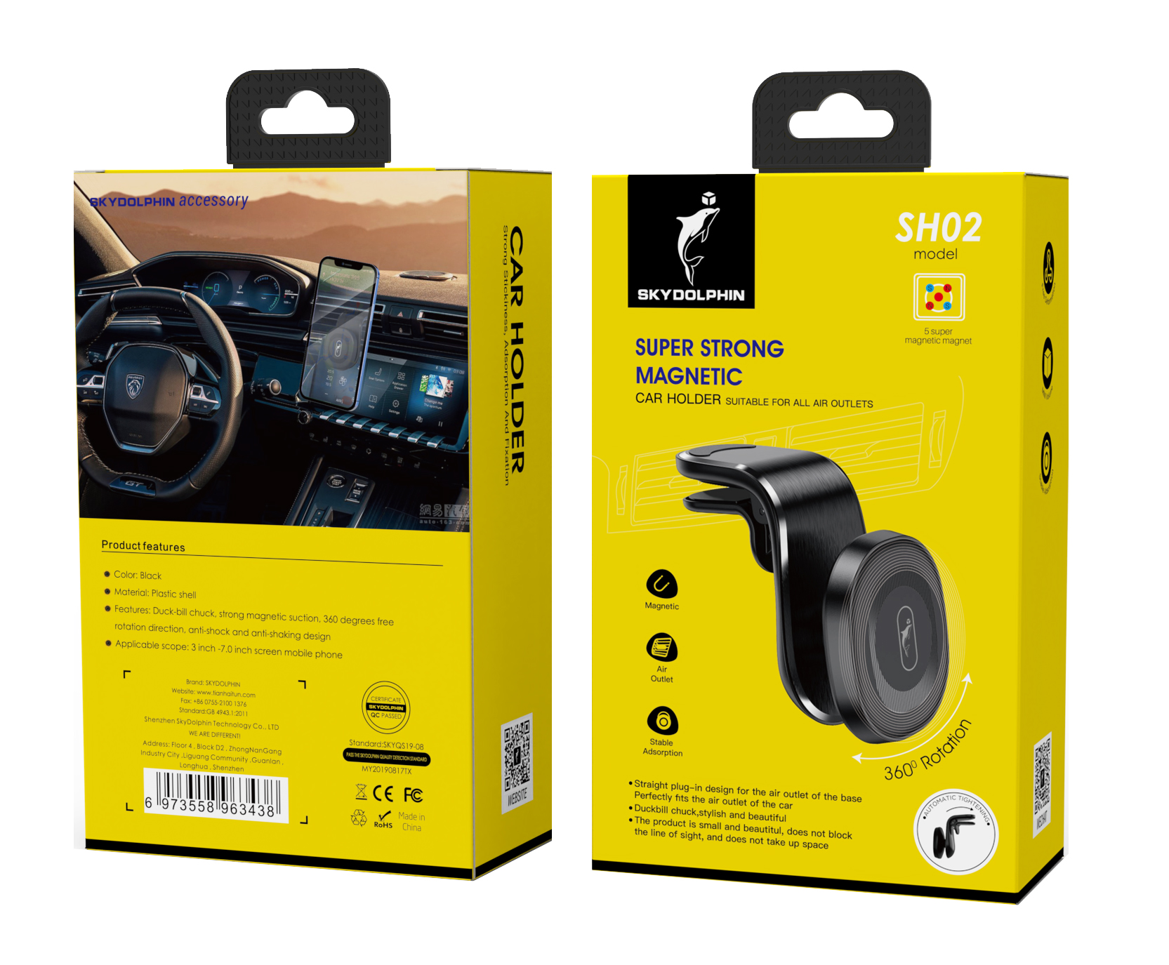 Тримач для смартфона SkyDolphin SH02 360 Rotation Air Outlet Magnetic Holder Black (SDAT-000085)