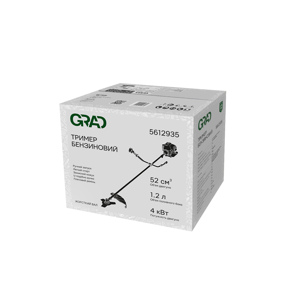 Тример бензиновий 4.0кВт 52см³ жорсткий вал U-ручка (котушка, ніж) (з 2-х частин) GRAD (5612935)