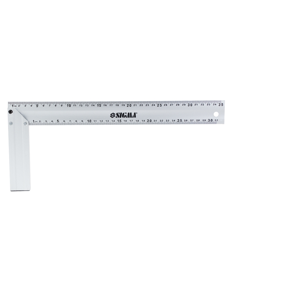 Кутник алюмінієвий 350 мм Sigma (3615351) призначений для розмітки та перевірки рівнів поверхонь при припасуванні або складанні механізмів. Представлений у вигляді основи та лінійки з нанесенням метричних поділів з одного боку косинця.
