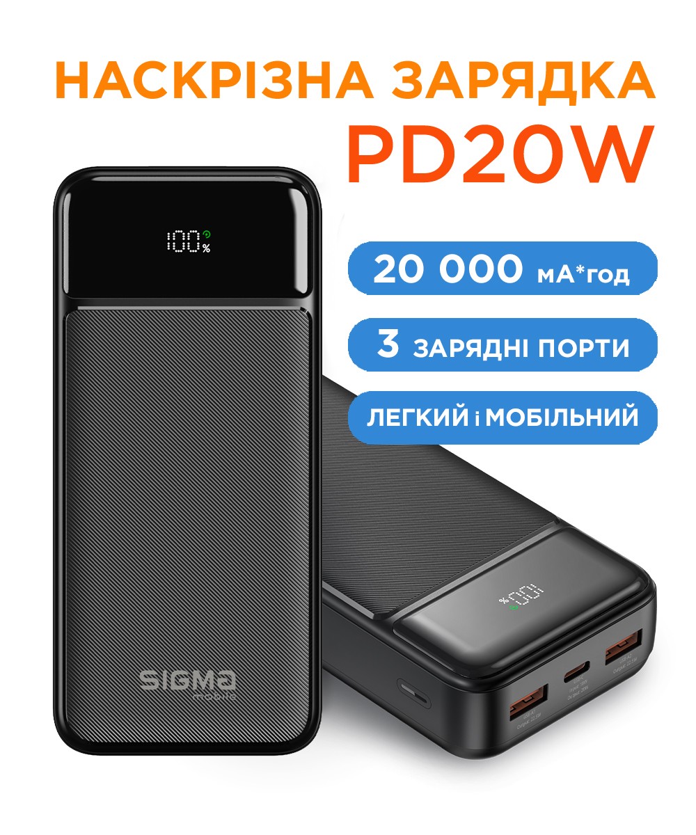 Універсальна мобільна батарея Sigma mobile X-Power SI20A4QL 20000mAh Black (4827798799710)