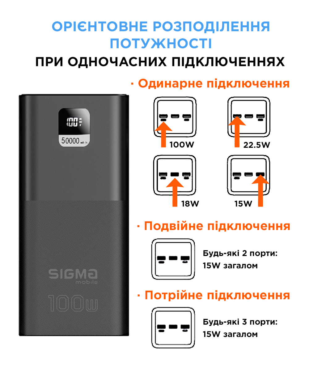 Універсальна мобільна батарея Sigma mobile X-Power SI50A6QLX 50000mAh Black (4827798741313)