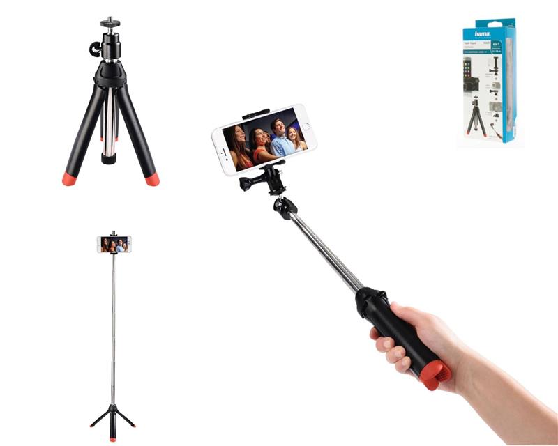 Універсальний монопод/ штатив для смартфонів, фотокамер Hama, GoPro, "Multi 4in1", 20-90 см, колір чорний