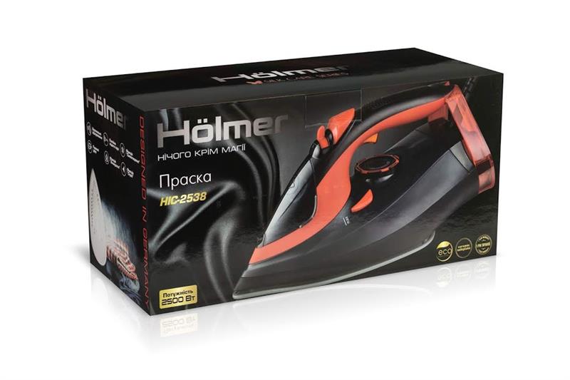 Праска Holmer HIC-2538 має стильний дизайн у чорному та червоному кольорах. Праска має потужність 2500 Вт, паровий удар 130 г/хв та постійну подачу пари 30 г/хв, а також керамічне покриття, забезпечить максимально комфортне прасування та допомагає розгладити навіть найскладніші складки. З функцією «Антикрапля» жодна крапля не потрапить на тканину. Функція «Вертикальна пара» дозволить легко відпарювати делікатні тканини, наприклад штори або костюми.