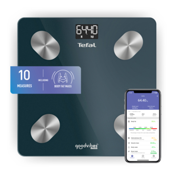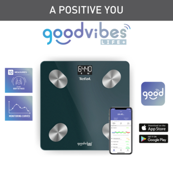 З розумними вагами Goodvibes і їхнім наджінтуїтивним мобільним додатком ви зможете краще пізнати своє тіло й керувати своїми цілями, ґрунтуючись на результатах вимірювання 10 показників тіла, як-от ІМТ, жирова та м’язова маса, а також маса кісток, рівень води в організмі та метаболічний вік.