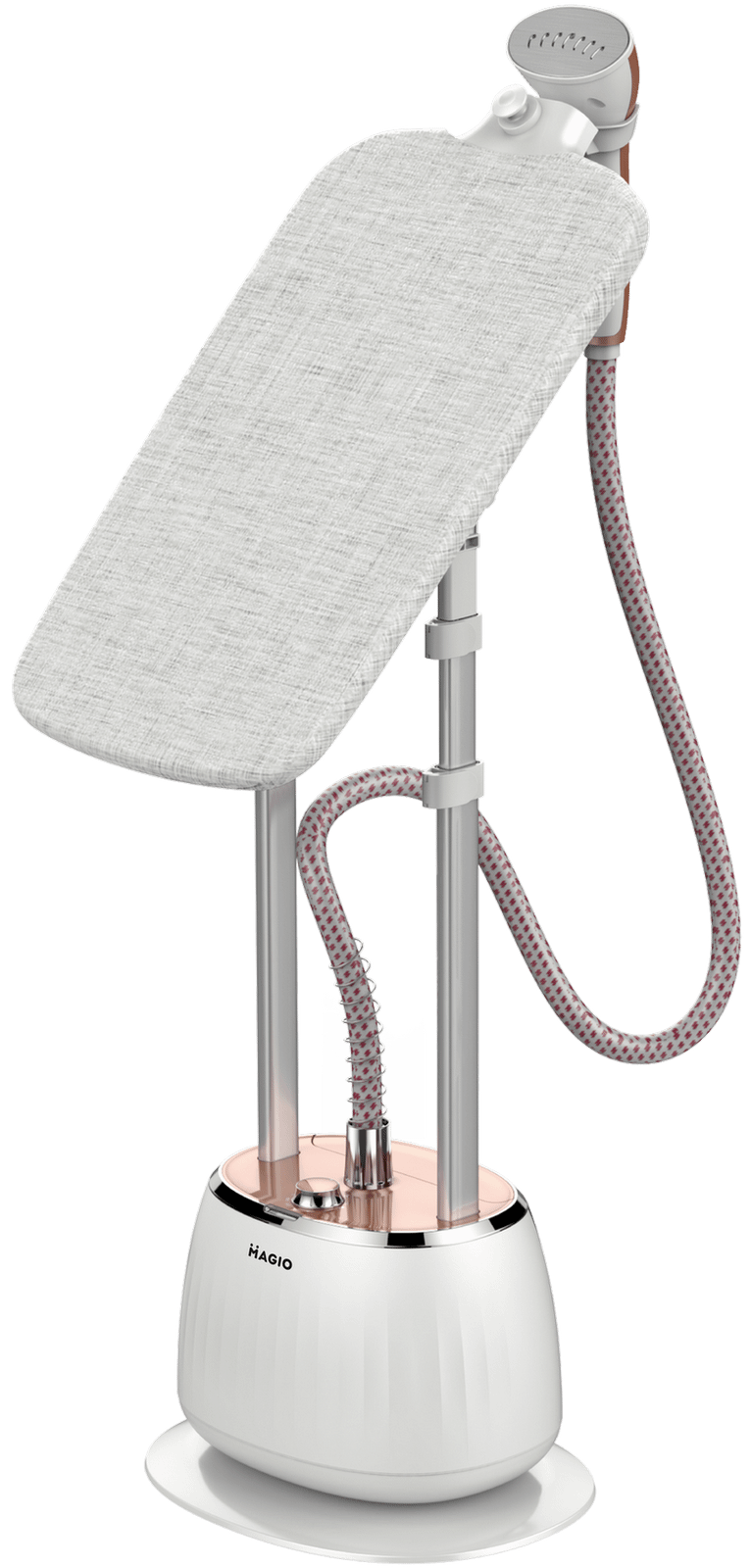 Стаціонарний відпарювач MG-330 – це сучасний пристрій, що дозволяє прасувати одяг і домашній текстиль, не витрачаючи багато зусиль. Також він швидко і ефективно дозволить обробити гарячою парою одяг, очищаючи і дезинфікуючи його. Має як горизонтальне, так і вертикальне відпарювання. Відпарювачем неможливо пошкодити навіть найтоншу і примхливу тканину – ні синтетичну, ні натуральну. Виріб контактує тільки з парою, температура якої 102°С. Прилад складається із парогенератора й резервуару з водою об’ємом 1,6 літрів. Потужність складає 1800 Вт, що є запорукою високої швидкості прасування. Відпарювач має сучасний мобільний дизайн з колесами, що забезпечує комфортне та легке пересування приладу квартирою. Продуктивність подачі пари становить 35 грами в хвилину, що дозволяє розгладити навіть найскладніші складки. В комплекті є дошка для відпарювання та термозахисна рукавичка. Стаціонарний відпарювач з таким набором можливостей значно полегшить життя, особливо, якщо в будинку діти.
