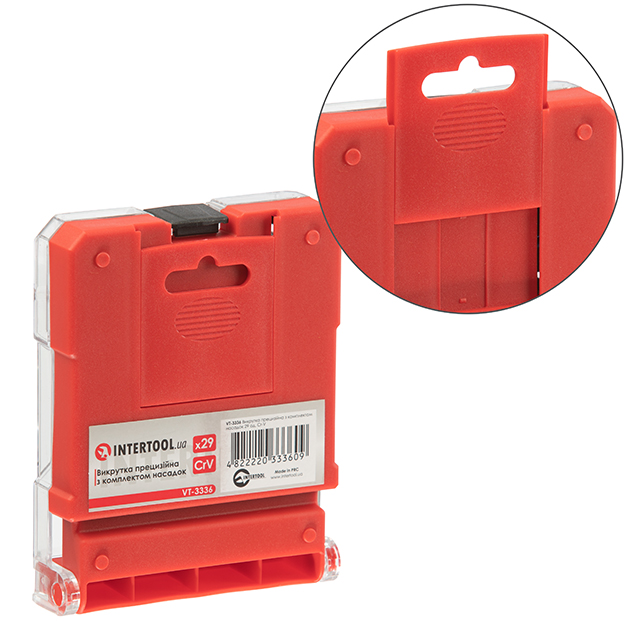 Зручність зберігання і портативність — от що ви отримуєте з цим комплектом. Всі аксесуари ретельно запаковані в пластиковий компактний кейс, який вирізняється продуманим дизайном і ефективним використанням простору. Внутрішня частина має відсіки для фіксації кожної біти в певному положенні, а також фіксатор тримача. Цей набір для тих, хто цінує зручність, якість і багатофункціональність.