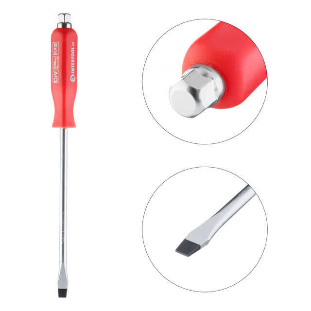 Ручка зручної форми з пластику забезпечує комфортну роботу та максимальну ефективність від докладеного зусилля. Чотиригранний кінець запобігає перекочування викрутки на робочому місці.