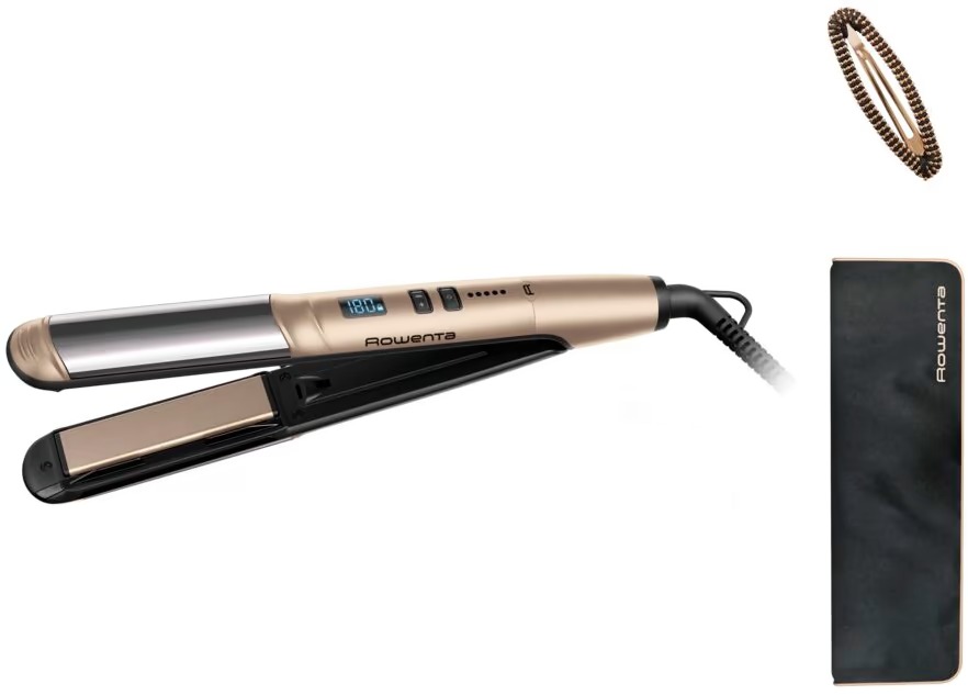 Чудовий зовнішній вигляд за лічені хвилини! Вирівнювач для волосся Rowenta Glam & Shine 2 в 1 SF4641F0 дає змогу як випрямляти, так і завивати волосся, даруючи вам свободу вибору стилю. Цей випрямляч 2 в 1 оснащений насадкою, що спрямовує волосся для завивки. Його заокруглений корпус робить укладання простим і зручним. Багатий функціонал пристрою доповнюють 8 вбудованих температурних режимів, гладке керамічне покриття для бездоганного ковзання та іонізація, яка робить волосся м’яким, блискучим і слухняним.