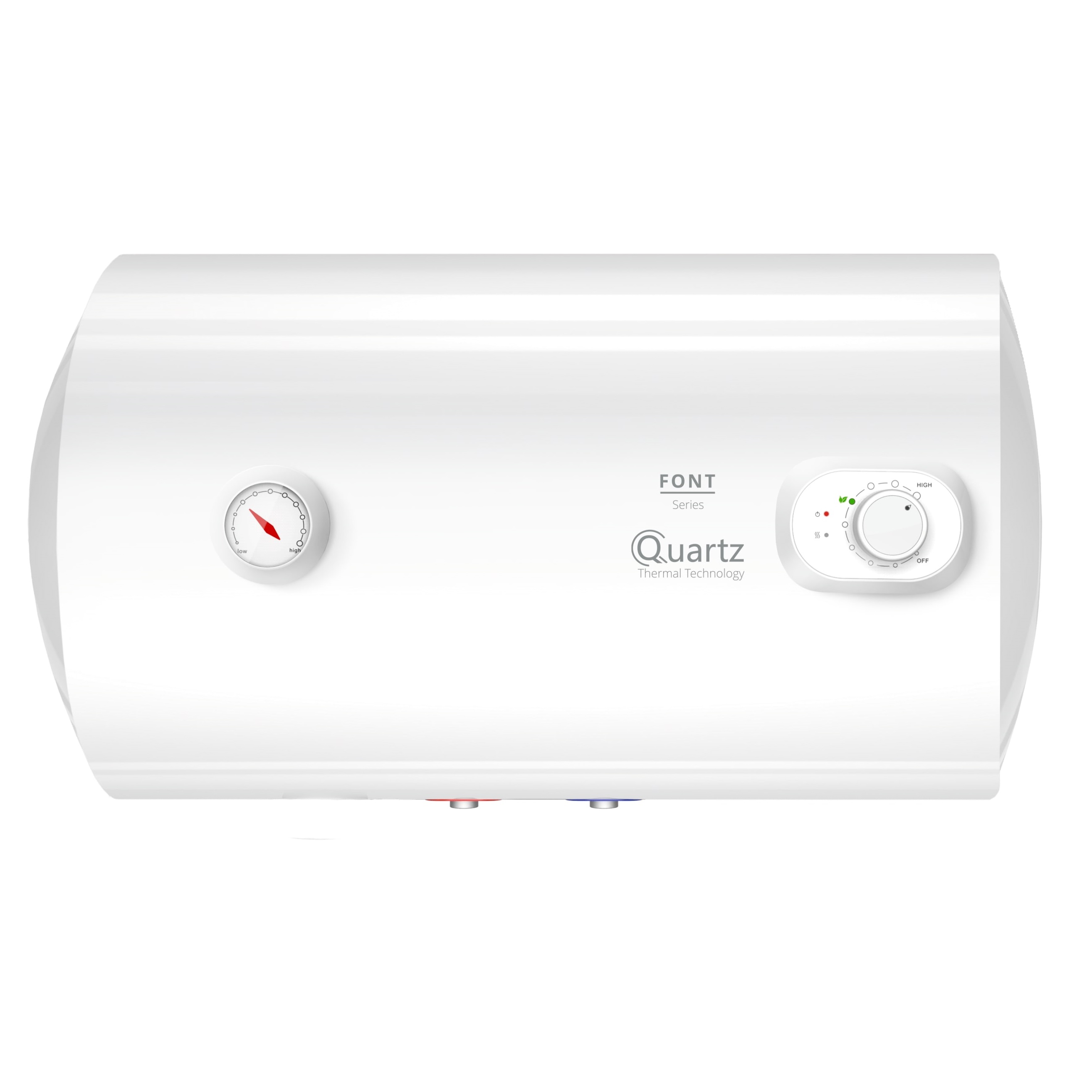 Font – універсальний водонагрівач з можливістю вертикального (моделі V) монтажу або горизонтального монтажу (моделі Н), класичним дизайном та надійним баком з біо-склофарфоровим покриттям. Ємнісний електричний водонагрівач, об’ємом 50, 80, 100, 150 л. Універсальний монтаж: вертикальний або горизонтальний. Круглий міцний сталевий зовнішній корпус з порошковим фарбуванням Сталевий емальований внутрішній бак з покриттям з BIO-склофарфору, максимальним робочий тиском 7,5 бар. Ізоляція Super Foam високої щільності. Механічне регулювання температури за допомогою зовнішнього регулятора. Надійний ТЕН з нержавіючої сталі та широким фланцем 93 мм для зручного очищення баку від бруду та накипу, потужністю - 1500 Вт. Збільшений магнієвий анод 20*200 мм. Два окремих капілярних термостати: регулювальний та запобіжний з вбудованою кнопкою розблокування при перегріві. Лампа індикації живлення та нагріву. Індикатор температури води. Комплект постачання: водонагрівач FONT, мережевий електричний кабель з євро-вилкою, кріплення (анкери 2 штуки) запобіжний клапан 7,5 бар, інструкція з гарантійним талоном.