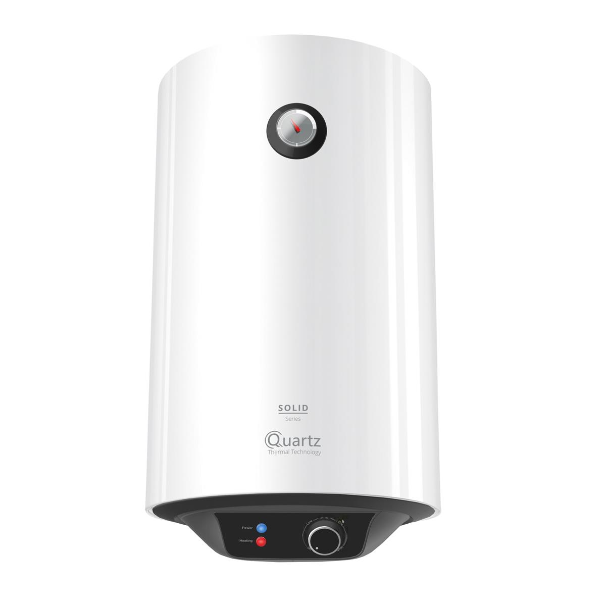 Quartz Solid - Сучасна модель, яка поєднує в собі переваги круглого водонагрівача та переваги інноваційного нагріву за допомогою «сухого» ТЕНу. Ефективне нагрівання: водонагрівач Quartz Solid працює на базі “сухого” ТЕНа – який чудово працює в будь-яких умовах, навіть за високої жорсткості води в регіоні. Завдяки ізоляції високої щільності Super Foam – низьки тепловитрати. Потужність: ТЕН водонагрівача Quartz Solid відрізняється не тільки “сухим” нагріванням, але й високою потужністю. Таке рішення дозволяє працювати з великими обсягами води та нагрівати рідину за оптимальний час; Турбота про здоров’я: внутрішній бак водонагрівача має покриття біостеклофарфора. Воно є тонким шаром матеріалу, за своїми властивостями максимально наближеного до справжнього скла. Завдяки цьому бак надійно захищений від головної причини поломки водонагрівачів – корозії. Міцний та довговічний корпус: класичний круглий сталевий корпус крім своєї місткості може похвалитися міцністю та стійкістю до гідроударів, що забезпечує тривалий термін служби водонагрівача; Зручне керування: регулювання роботи водонагрівача Quartz Solid здійснюється за допомогою простого, сучасного та оригінального механічного регулятора у нижній частині, який розташований фронтально до користувача;