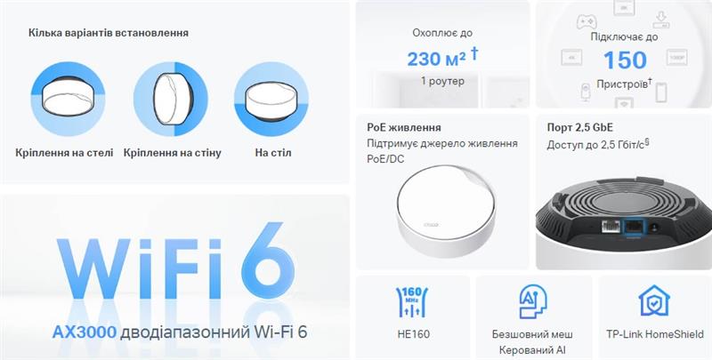 WiFi Mesh система TP-Link Deco X50 PoE (1-pack)