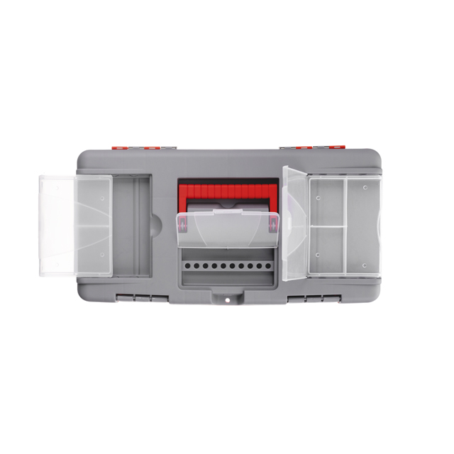 На кришці ящика розташовані два органайзери, які відмінно підходять для зберігання кріплень або будь-яких інших витратних матеріалів. Також зверху передбачений відсік для біт, який закривається прозорою кришкою. Усередині ящика розміщена полиця для зберігання губцевого та іншого невеликого інструменту, який часто використовується.