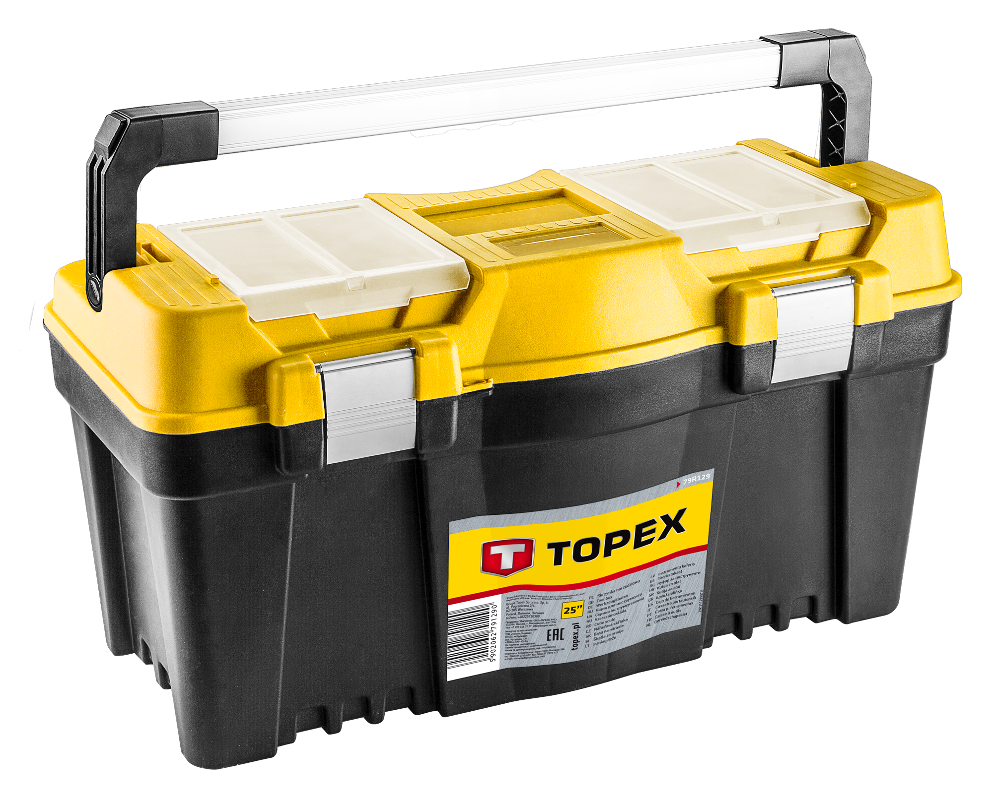 Ящик для інструменту TOPEX, 25", з лотками, алюмінієва ручка, 60х29х33 см (79R129)
