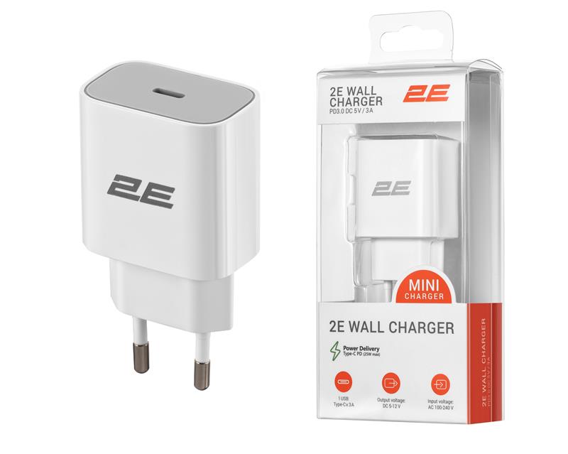Зарядний пристрій мережевий 2E 25Вт USB-C PD, білий