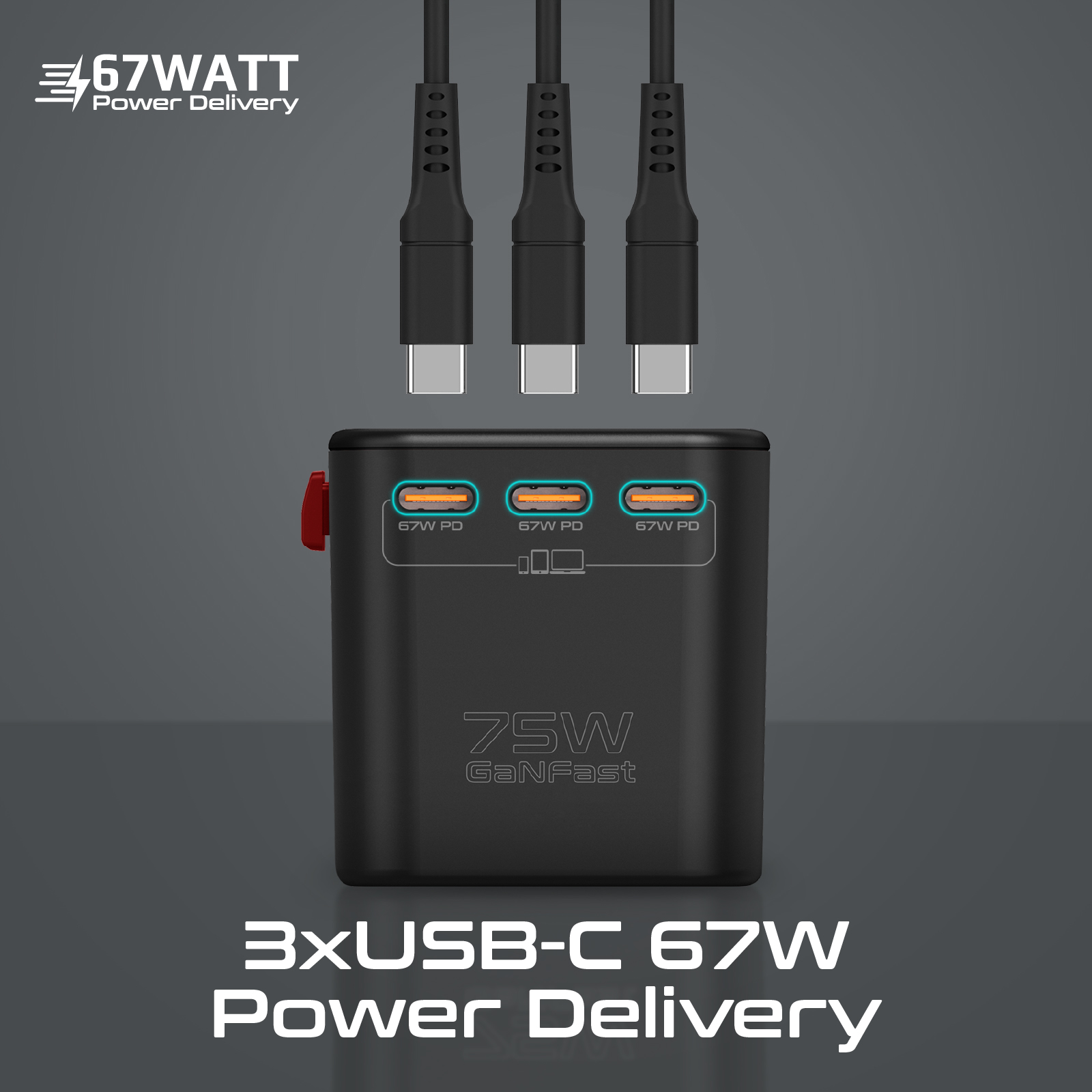 Зарядний пристрій Promate TripMate-GaN75 75W Black