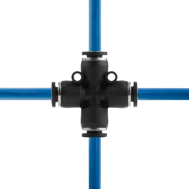 Цангове з'єднання X-подібної форми використовується для створення пневматичних магістралей і для монтажу пневмосистем. Забезпечує повністю герметичне з'єднання різних пневматичних шлангів без пошкодження їхньої поверхні (PU, PE, PA) - поліуретанових, поліетиленових, поліамідних тощо.