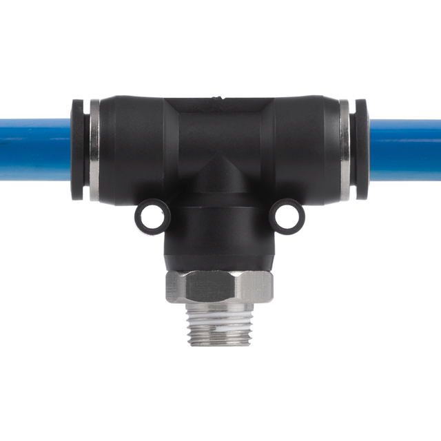 Цангове з'єднання T-подібної форми використовується для створення пневматичних магістралей і для монтажу пневмосистем. Забезпечує повністю герметичне з'єднання різних пневматичних шлангів без пошкодження їхньої поверхні (PU, PE, PA) - поліуретанових, поліетиленових, поліамідних тощо.