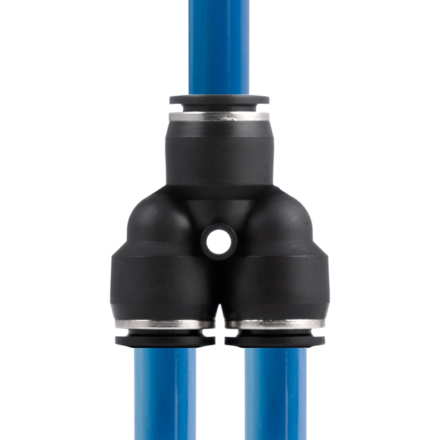 Цангове з'єднання Y-подібної форми використовується для створення пневматичних магістралей і для монтажу пневмосистем. Забезпечує повністю герметичне з'єднання різних пневматичних шлангів без пошкодження їхньої поверхні (PU, PE, PA) - поліуретанових, поліетиленових, поліамідних тощо.