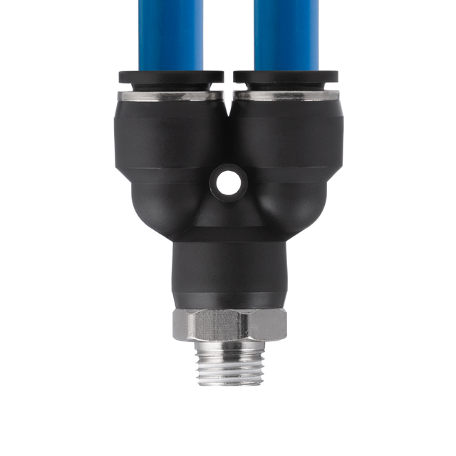 Цангове з'єднання Y-подібної форми використовується для створення пневматичних магістралей і для монтажу пневмосистем. Забезпечує повністю герметичне з'єднання різних пневматичних шлангів без пошкодження їхньої поверхні (PU, PE, PA) - поліуретанових, поліетиленових, поліамідних тощо.
