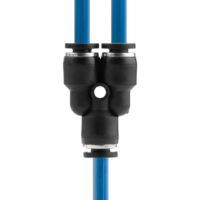 Цангове з'єднання Y-подібної форми використовується для створення пневматичних магістралей і для монтажу пневмосистем. Забезпечує повністю герметичне з'єднання різних пневматичних шлангів без пошкодження їхньої поверхні (PU, PE, PA) - поліуретанових, поліетиленових, поліамідних тощо.