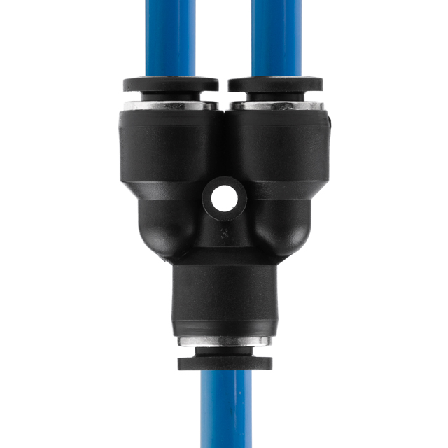 Цангове з'єднання Y-подібної форми використовується для створення пневматичних магістралей і для монтажу пневмосистем. Забезпечує повністю герметичне з'єднання різних пневматичних шлангів без пошкодження їхньої поверхні (PU, PE, PA) - поліуретанових, поліетиленових, поліамідних тощо.