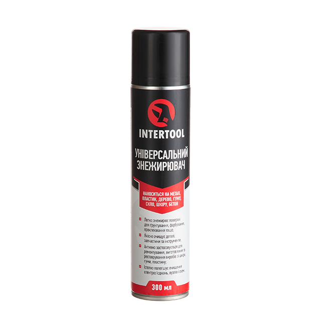 Універсальний засіб для очищення різноманітних поверхонь від слідів жиру, змазок, масел, смол. Наноситься на метал, пластик, дерево, гуму, скло, шкіру, бетон. Використовується для промислових і побутових робіт, в ремонті автотранспорту. Нейтральний до будь-яких типів лакофарбових покриттів.
