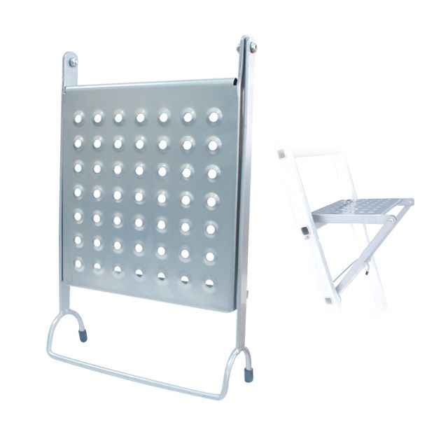 Універсальна сходинка-полиця підходить для будь-яких драбин і розрахована на таку ж вагу, як і звичайні сходи, до 150 кг. Використовується як зручна підставка для відра з фарбою або для робочих інструментів.